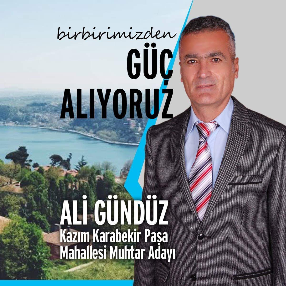 Ben Kazım Karabekir Paşa Mahallesi muhtar adayınız Ali Gündüz. 35 yıldır bu mahallede yaşıyorum. Evli ve iki çocuk babasıyım.