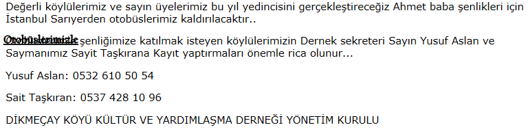 7 inci Ahmet baba şenliklerine otobüsler kaldırılacaktır...